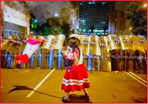 Se está desarrollando una lucha directa, por parte de la estructura armada del Estado y el pueblo peruano olvidado, menospreciado y ninguneado. Ese pueblo siente que le han arrebatado su derecho democrático, la soberanía del país y la igualdad de oportunidades, al ver reforzada, por la corrupción, la casta política racista, discriminadora y clasista que se consideran los iluminados en gobernar el país, considerando que el pueblo lo conforman ignorantes, inmorales y sobre todo que no están preparados para gobernar. Esa estructura armada del Estado lo conforman las fuerzas policiales y militares, donde la figura de la señora Dina Boluarte pasa a ser un medio testimonial, puesto que otros (quienes conforman los poderes mediáticos) están en la conducción de la toma de decisiones, eso no significa que la Señora Dina Boluarte está libre de culpa; es la responsable política que tendrá que explicar en su momento, ante los juicios de genocidio por lesa humanidad y la malversación de fondos, quiénes son los personajes que actuaron entre las sombras y los visibles.