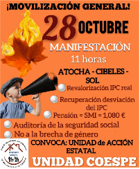 Por todo ello llamamos a sindicalistas, pensionistas, jóvenes, trabajadores y trabajadoras en activo a preparar la manifestación del 28 de octubre y a participar en ella. Porque, gobierne quien gobierne, el derecho a las pensiones públicas se defiende.