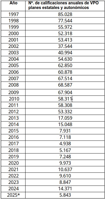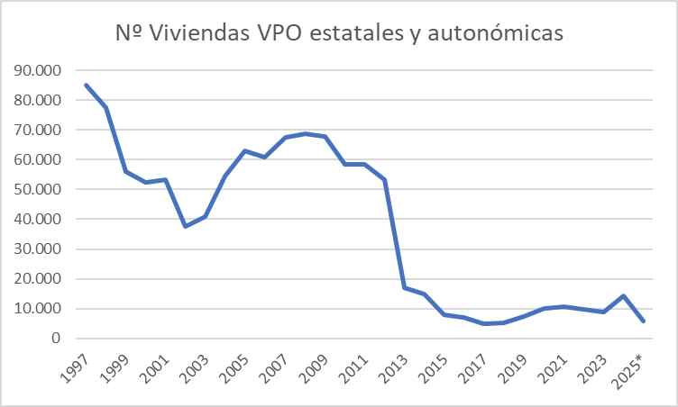 Cada cual saque sus conclusiones respecto a los distintos periodos de los diferentes gobiernos, en función del ritmo de caída del número de Vivienda de Protección Oficial puestas a disposición de la población más desfavorecida.