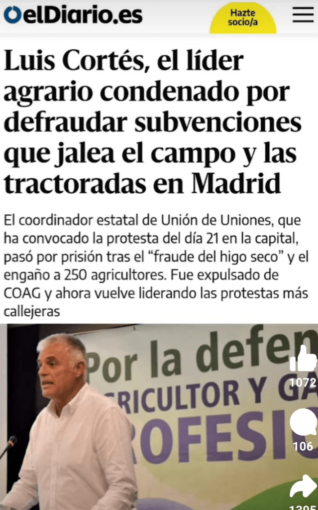 Algunas de las reivindicaciones del sector agrario son justas y el socialismo le debe dar respuesta. Ese es el grano. La paja es que la ultraderecha y los grandes empresarios que forman parte del problema del campo y de la especulación alimentaria están intentando intoxicar la campaña. Echarlos de las manifestaciones es el mejor favor que se puede hacer a los que realmente trabajan la tierra.