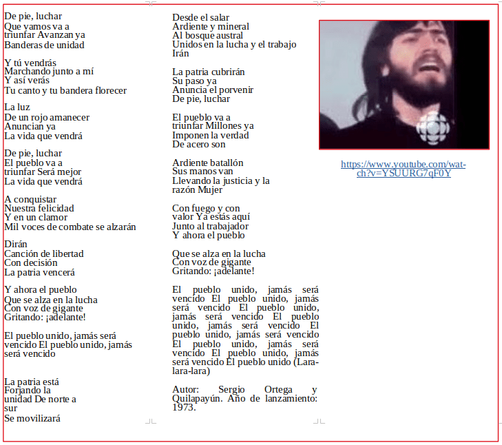 Junto al título de la canción reseñamos el número de Tribuna Socialista en el que fue publicada. Y al final de cada canción hay un enlace para visionar y escuchar cada tema, en versiones que en su momento nos parecieron las más originales.