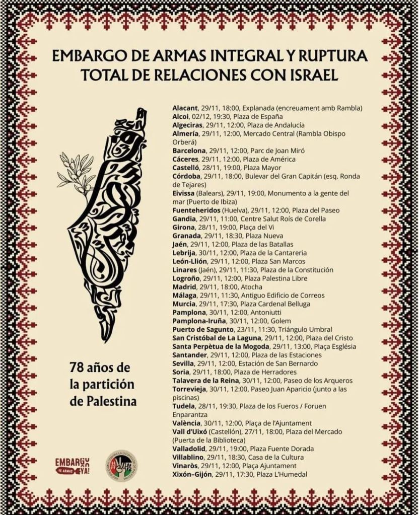 El pasado sábado 29 de noviembre, aniversario de la Resolución 181 de la ONU que dividió Palestina a cuenta del imperialismo, volvieron a movilizarse las organizaciones palestinas en más de 40 ciudades de todo el Estado español.