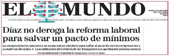 Comprendo y comparto que los sindicatos, UGT y CCOO, se hayan levantado de la mesa de negociación del Acuerdo Estatal de Negociación Colectiva (AENC), ante las propuestas de la CEOE de una subida salarial para los tres próximos años del 8% (2,66% anual) y sin cláusula de revisión. Sin embargo, es una llamativa coincidencia, o no, que la subida salarial media a octubre sea del 2,64%, un 0,02% menos que la propuesta de la patronal. No se ha firmado el “Pacto de Rentas” promovido por el Gobierno, pero lo hechos coinciden plenamente en que el coste de esta nueva versión de crisis económica carga sobre los salarios, con una devaluación constante.